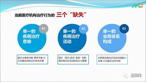 迈康推出的《临床营养学科解决方案MK-HDTDCS》项目,其思想是建立“营养相关人体功能与行为健康问题”的诊疗学科,发展功能与行为健康问题诊疗体系,从而弥补这一缺失。