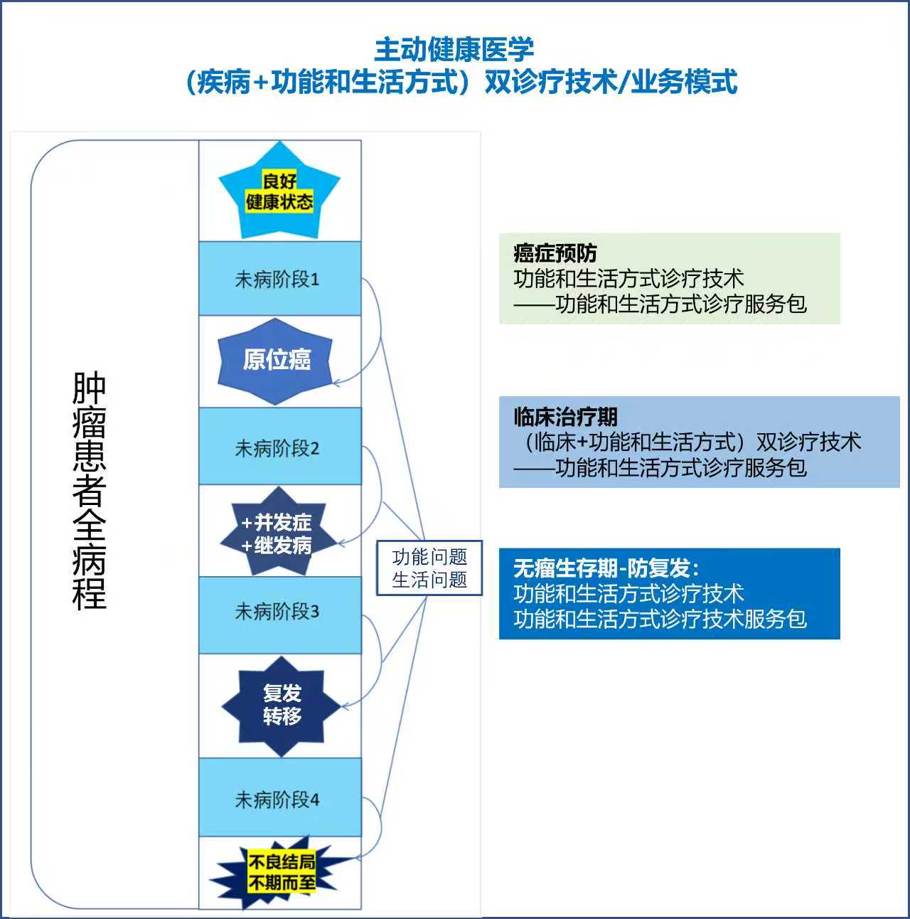 在无瘤生存期开展防复发防转移的“功能和生活方式动态诊疗”———主动健康技术而形成品牌业务,由此带来的患者受益和社会效益同样也是革新性的,巨大的经济效益也是显而易见的。